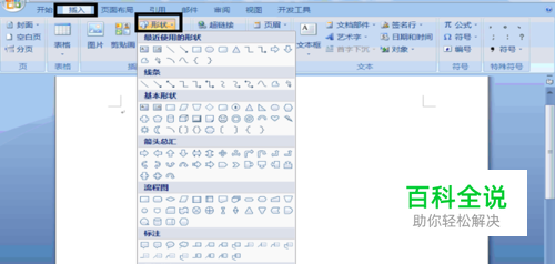 第一: 新建一个07版word文档并且打开它,进入word的编辑界面,鼠标点击插入,再点击形状,选中新建绘图画布点击它。
