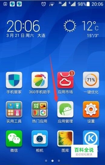 在华为手机上面找到应用管理应用程序,点击它,进入其主页面,如图所示。