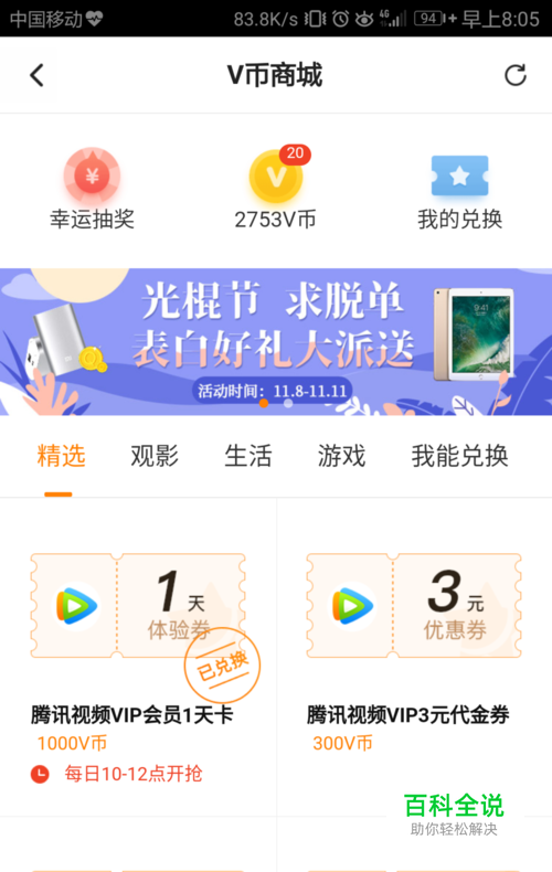 腾讯视频如何使用金币兑换腾讯会员?