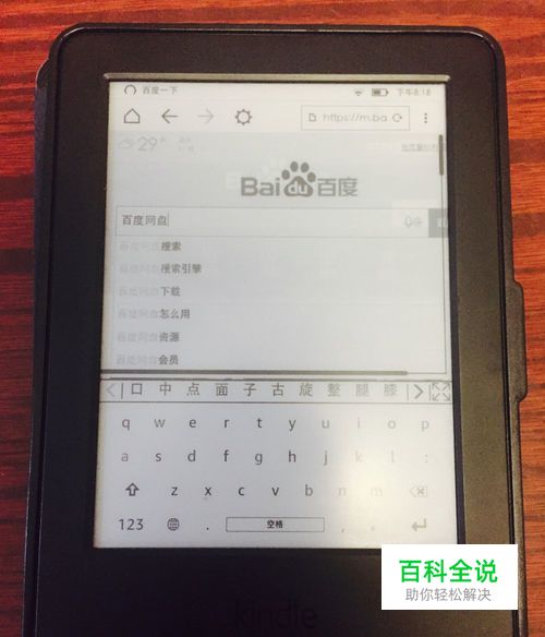 先在kindle中右上角的更多选项中选择体验版网页浏览器,直接输入www.baidu.com进行百度搜索。