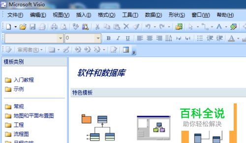 打开Microsoft Office Visio 2007,左侧的模板类别中选择“软件和数据库”,双击右侧的“数据库模型图”。