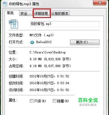 在属性对话框中选择“详细信息”标签。