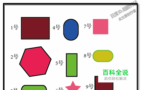 如图中所示。 这一共有9个图形;为了方便解说,小编在这里给每个图形编了号。