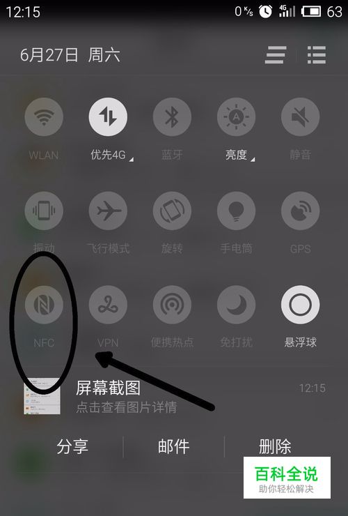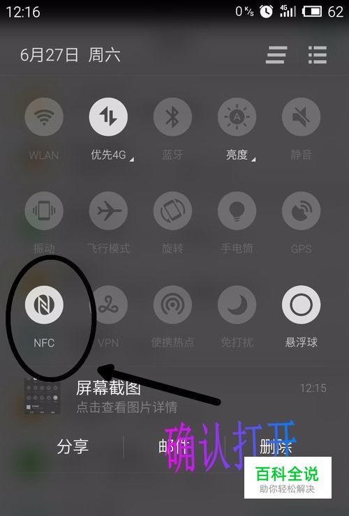 打开手机的NFC功能(一般安卓手机是下拉悬浮屏在悬浮屏里,也可以在设置里面的网络里面找)。