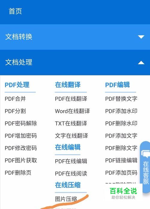 在导航的位置知道文档处理,点击文档处理就会看到图片压缩,点击图片压缩进入到压缩的页面。