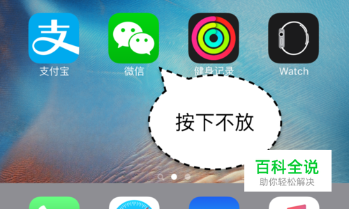 在 iPhone 的主屏桌面上是用于显示当前安装了应用的地方,所以也可以在这里直接删除它们。如下图所示,用手指轻按下任意应用图标不放,即可进入主屏编辑模式。