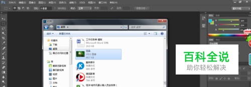 第一步,双击打开ps,点击文件打开桌面图片花朵