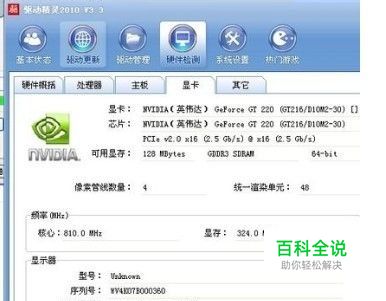 下载一个驱动精灵,可以让驱动精灵自己识别显卡的芯片数据,比如: 显卡:ATI RADEON X550/X700 SE (RV410 SE) 芯片:ATI RADEON X550/X700 (RV410) PCIe v1.0 x16 (2.5 Gb/s) @ x16 (2.5 Gb/s) 可用显存:128 MBytes DDR SDRAM 128-bit