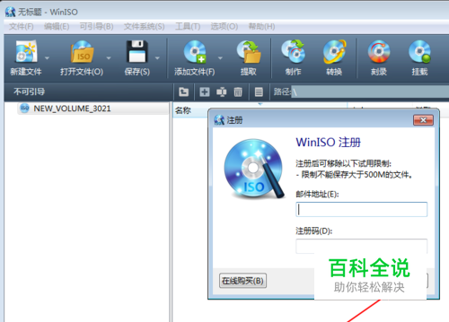 打开winiso软件,它需要我们注册,但是我们只是暂时使用,我们可以选择“稍后”,或者直接关闭窗口