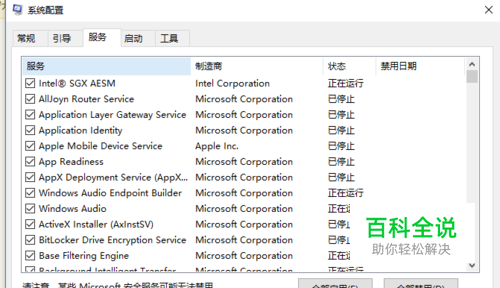 在“服务”子菜单下面,勾选左下角“隐藏所有microsoft”那一项。