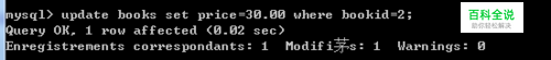 例如1:将bookid=2的记录,价格由原来50.00改为30.00. sql语句:update books set price=30.00 where bookid=2;