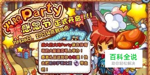 哈哈,感恩节到了,小洛克们准备好了吗?2011年11月26日、27日的14点-16点,盛大的感恩节火鸡party将在【体育场】的大船【洛克号】上举办哦~!!!想知道这次的感恩节礼品是什么吗?一定让你温暖到心坎里哦~!!!是什么呢?咳咳……除了大家已经习以为常的果儿糖等礼品外,还有帕尔萨斯之蛋哦~!帕尔萨斯之蛋不就是很多小洛克梦寐以求的宠物蛋吗?想要吗?那就来参加我们的派对吧~!
