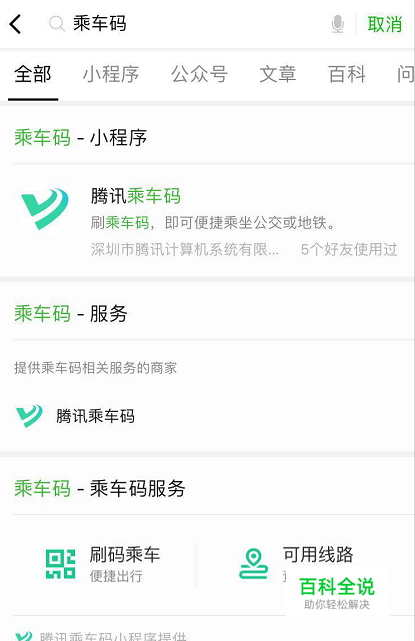 首先我们在微信里面搜索腾讯乘车码,然后找到这个微信小程序。