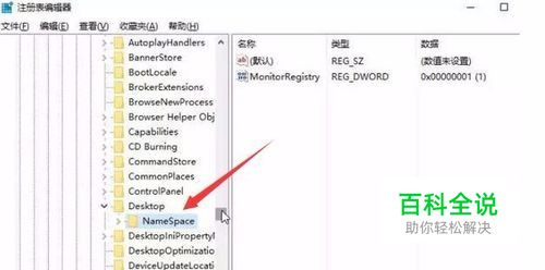 找到以后我们切回到注册表中,展开【NameSpace】,在下面找到该上次找到的编号项,单击右键,删除就可以了,如下图所示: