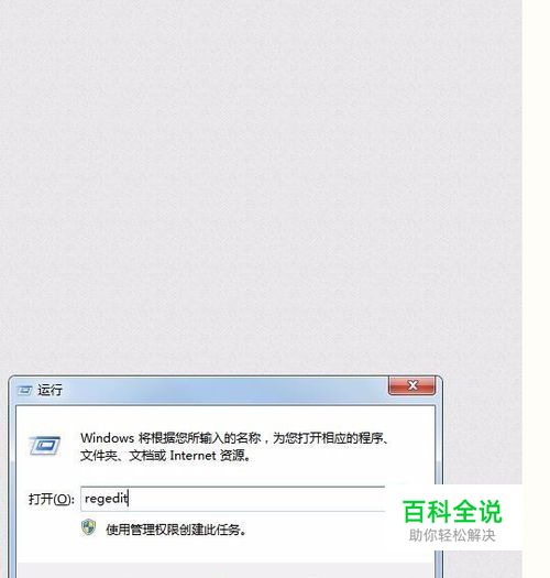 首先我们在 开始处点击运行,或者直接用快捷键按win+r,出现运行框,接着我们在框中输入regedit来打开注册列表,如下图所示: