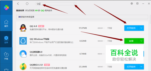 下面我们以QQ为例,然后点击搜索,然后你需要下载的东西就出来了。 如下图:
