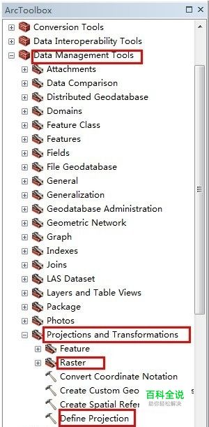 2、ArcToolbox--Data Management Tools--Projections and TrTransformations--Raster--Define Projection(栅格数据)