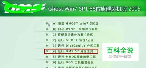 进入BIOS中设置光盘启动,放入光盘,重启电脑,选择“运行DM9.57分区工具”按回车键。