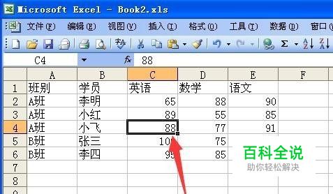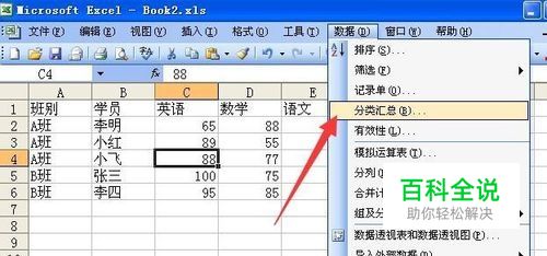 第一,如图,输入成绩数据,按班别排好序。把光标在数据区内随便选中一格。