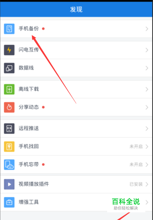 发现中点击手机备份;
