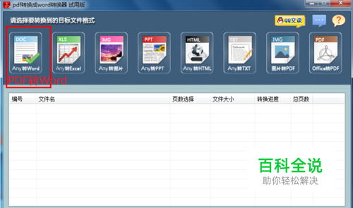 加密PDF与普通PDF的转换方法基本一致,只不过在转换之前要输入密码。打开迅捷PDF转换器,选择”Any转Word“选项。