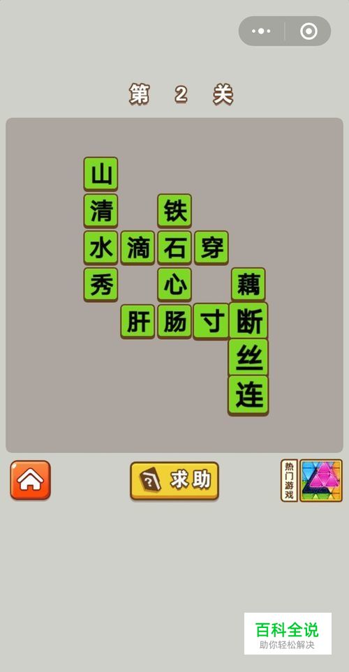 第2关答案山清水秀、铁石心肠、水滴石穿、藕断丝连、肝肠寸断。