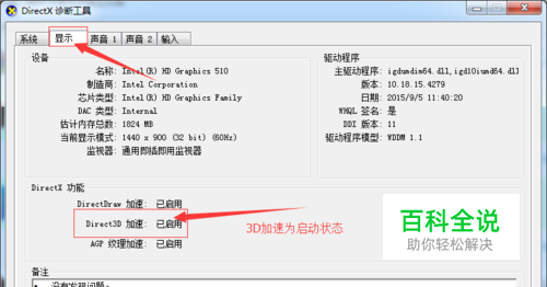 查看3D加速状态。图片上可以看到,当前为开启状态。