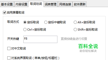 在软件设置中打开“取词划词”选项,然后再“开启OCR强力取词”前方框中打勾,然后点击“保存设置”