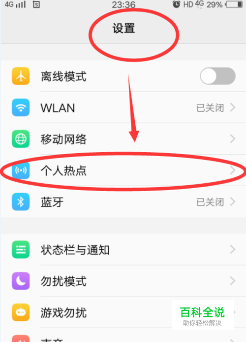 首先打开手机的“设置”功能,在菜单里找到“个人热点”点击进入。