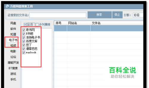 点击左侧的“电子书” ,勾选出需要搜索的网站。