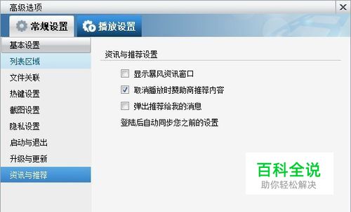 暴风影音如何跳过广告 在暴风影音中,跳过广告的方法是: 1、右键界面--高级选项--资讯与推荐,如下图: 2、不勾选“显示暴风资讯窗口”;勾选取消播放时期赞助商推荐内容;不勾选弹出推荐给我的消息。 3、应用--确定。 在暴风影音中,取消广告,是取消暴风影音的广告,并不能取消视频网站的广告,因为,视频网站的广告,不受暴风影音控制。
