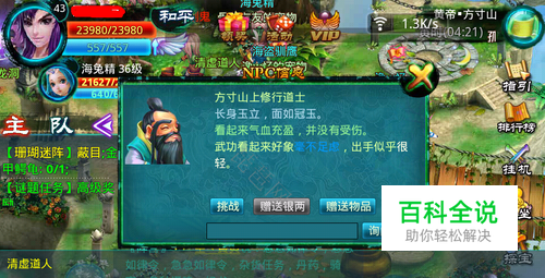 任务流程 NPC:清虚道人 ->与清虚道人对话 你:输入“巴山虎” 清虚道人会说:每天的寅时,巴山虎都会给压龙洞老妖送来礼物,可能是什么礼物哟。