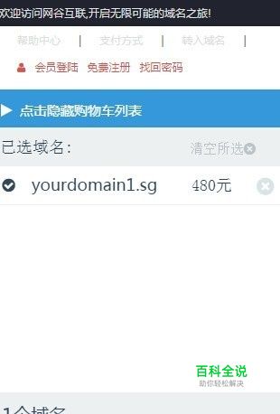 将查询可以注册的的域名加入域名购物,点击提交注册域名