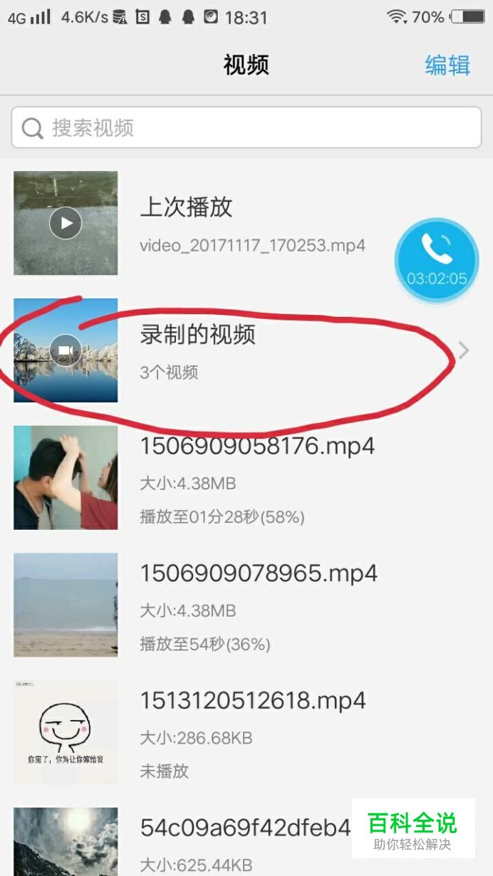 在视频里面会有很多你下载的视频和拍摄的视频,找到录制的视频这一选项,如下图