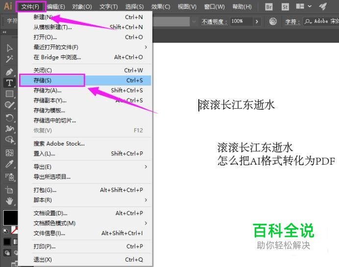 看到打开的文件,我们点击AI菜单栏上方的“文件——存储”,如图。
