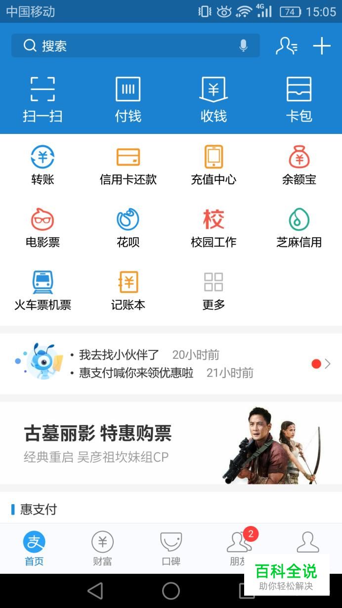 在手机菜单中找到支付宝,打开登录支付宝,进入主页面后,在页面最右下角点击我的。