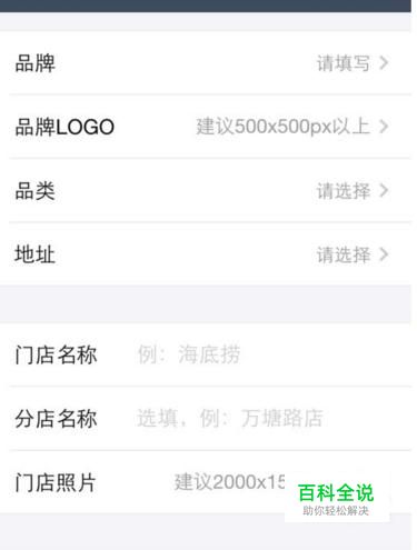 门店信息我们首先填的是品牌名称、品牌LOGO、产品种类等,具体如下图所示。