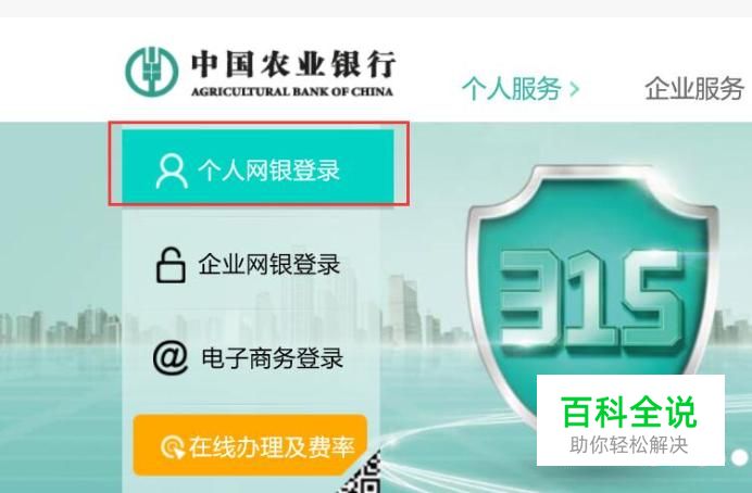 首先,我们打开农业银行官网页面,点击页面左侧“个人网银登录”选项。