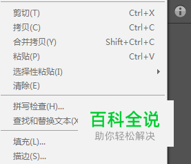 常用的编辑操作快捷键: 剪切[Ctrl+X] 拷贝[Ctrl+C] 合并拷贝[Ctrl+Shift+C] 粘贴[Ctrl+V] 自由变换[Ctrl+T]