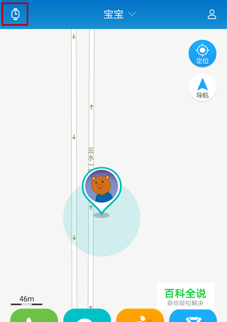 在APP华为儿童手表主界面点击左上角的手表图标