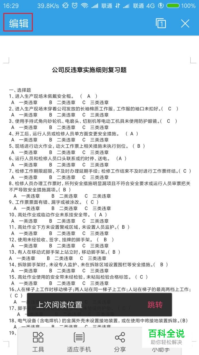 首先,我们使用WPS Office软件打开需要修改字体的Office文件,点击页面左上角“编辑”按钮。