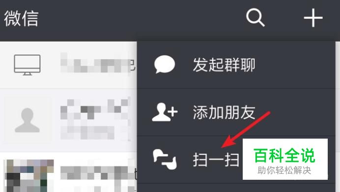 点击后,弹出下拉菜单,点击‘扫一扫’