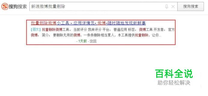 首先,请大家使用搜索引擎软件搜索“新浪微博批量删除”关键字,在搜索结果页面中点击找到该工具。