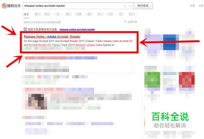 打开搜狗搜索,输入“release-notes-acrobat-reader”进行搜索。