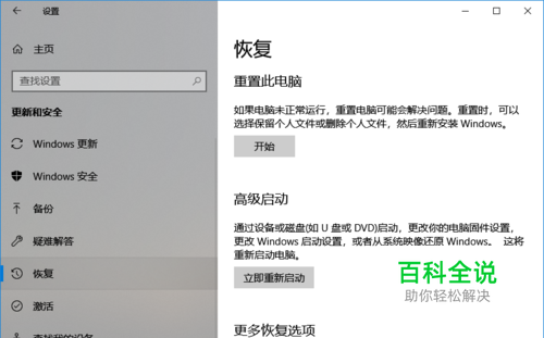 点击“恢复”,然后选择重置此电脑,确定之后还会有选项,依据个人情况选择