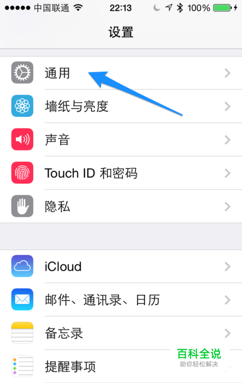 在设置列表中,找到 “通用”选项,点击进入,如图所示
