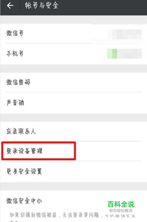我们在 账号与安全的页面点击【登录设备管理】进入下一个步骤。