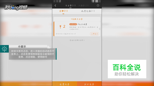 找到卡券并点击,进入页面后自动选择代金券上,点击免费领券,即能显示能领的代金券,点击领取,使用即可。