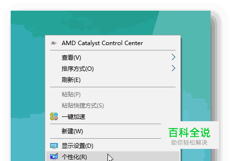 右击 “桌面”,点击 【个性化】。