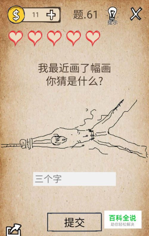 第61关“我最近画了一幅画”,这题根据图片以及提示,可以猜出答案是“人字拖”,输入答案即可成功通关。